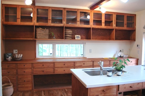 小窓のあるキッチン収納