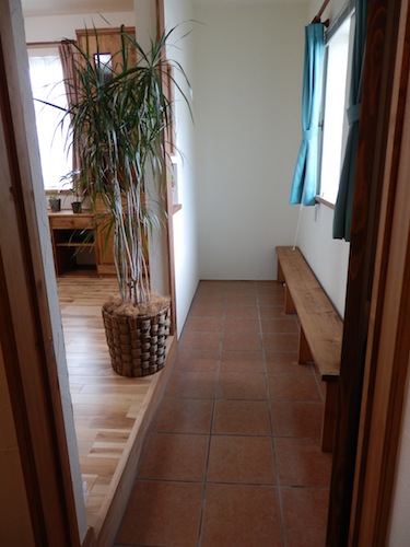 明るいタイル貼りの土間