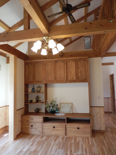 吹き抜けに面したリビング・飾り棚
